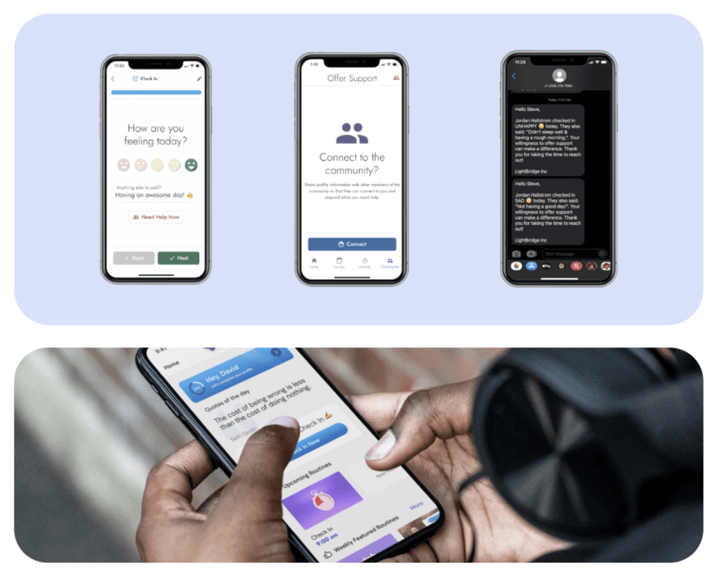The Lightbridge Mobile App is a powerful tool for those on the path to recovery. With customizable routines, emotional check-ins and a supportive community, the app helps individuals build healthy habits, track progress and stay connected to vital resources. Whether you're just starting your journey or maintaining long-term recovery, Lightbridge empowers you to take control and find the support you need, all from your phone.