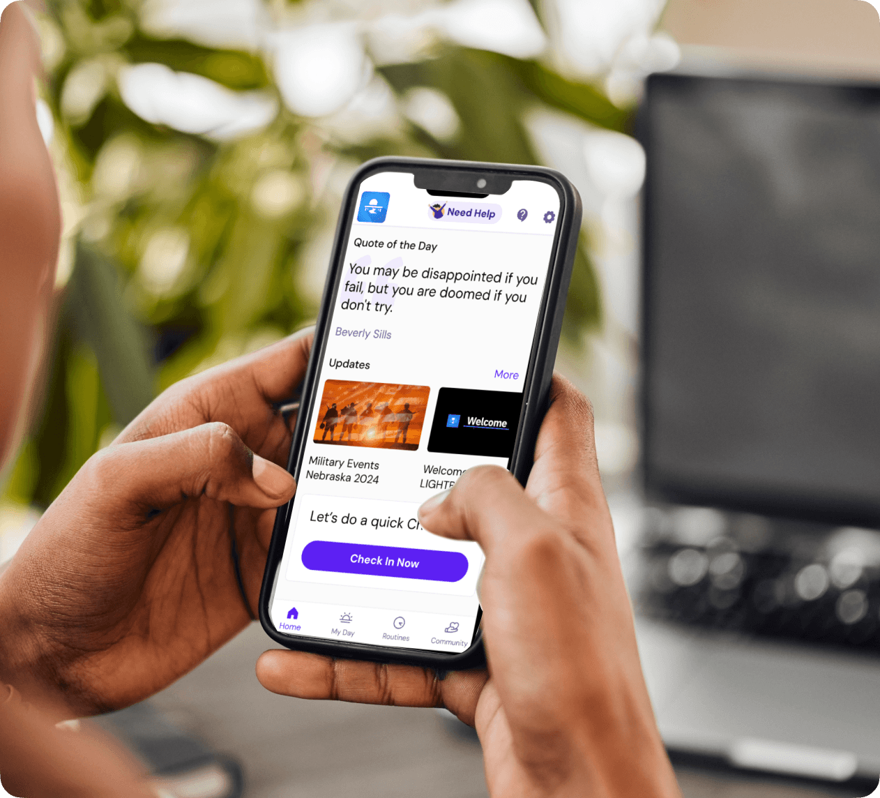 While the care is self-directed, the app provides access to a supportive military community. Members can connect with others who share similar experiences for mutual encouragement, celebration, and support when needed.